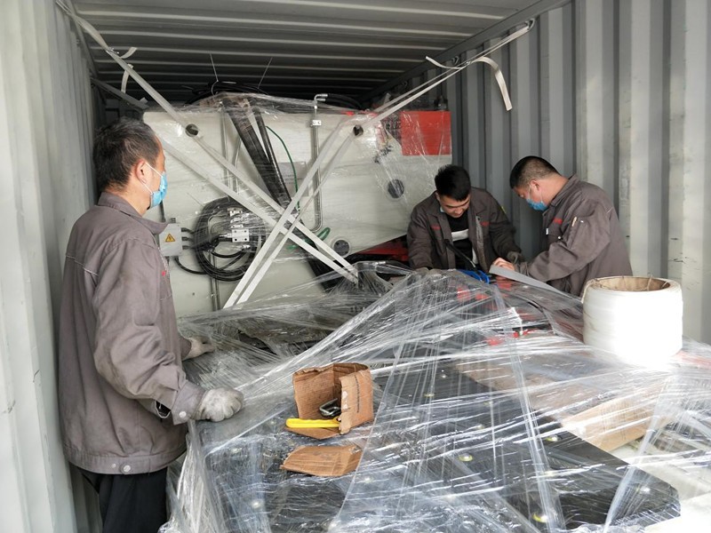 今天裝箱的是為客戶量身定制的加大型數控液壓板材沖孔機。
